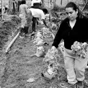 Mindo Organic vegetable garden is a project set up by domestic and international charities. Local women work on it and share the produce. Their children help or play alongside.